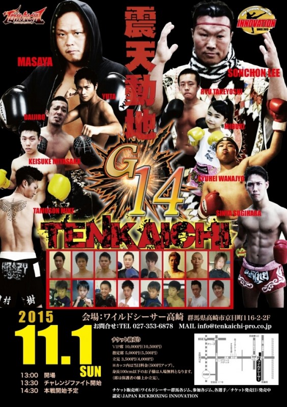 13:30開場 14:00チャレンジファイト開始 15:00本戦開始予定