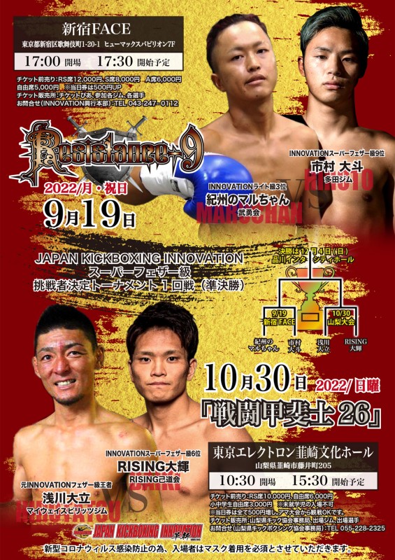 この他、細心の注意を持ってコロナ対策に努めますが、ご観戦いただきます皆々様におかれましても自衛の諸々、またイベント前後、開催中のご協力の程、よろしくお願い申し上げます。