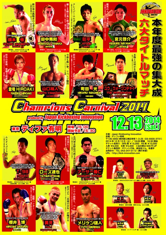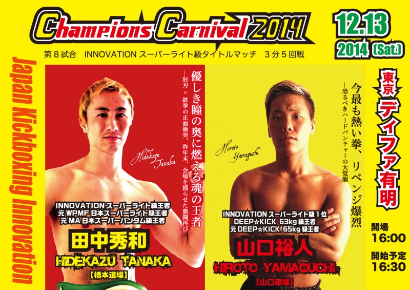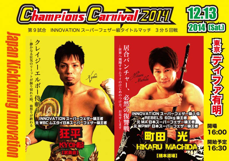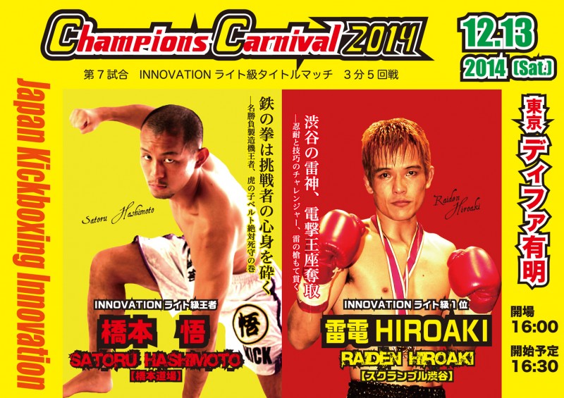 【オープニングファイト!!】 12月13日(土)ディファ有明で開催されるINNOVATION主催【CHAMPION'S CARNIVAL2014】は、オープニングファイトから対戦が熱い!! 翔貴選手...