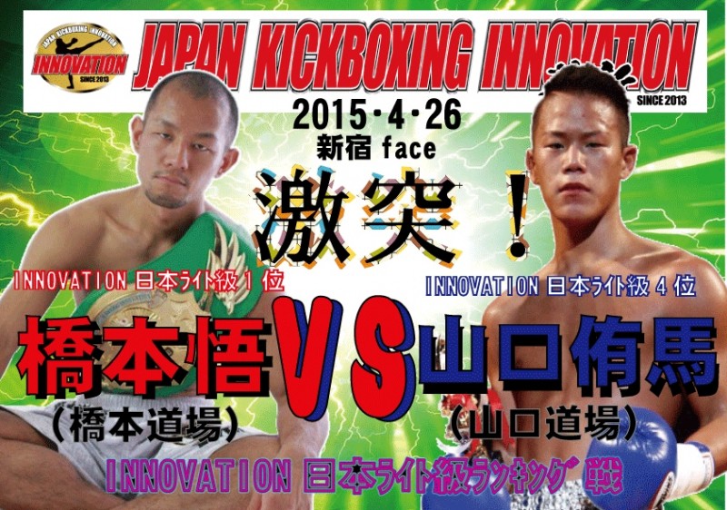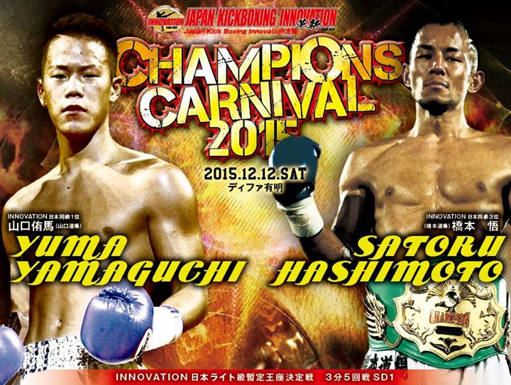 12月12日(土)東京ディファ有明で開催されるINNOVATION興行【CHAMPIONS CARNIVAL2015】での日本ライト級暫定王者決定戦に挑む同級1位 山口 侑馬(山口道場 )と、同級3...