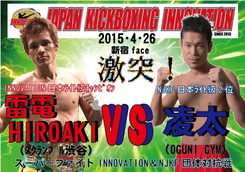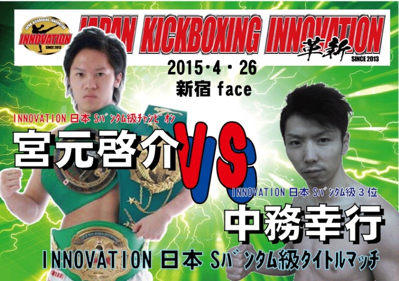 4月26日(日)新宿faceで開催されるINNOVATION興行の第7試合の選手のコメントが届いた。 勇児vsニモ。INNOVATIONとNJKFのフライ級のチャンピオン同士が激突する。...実はこの戦い、お互い拳...