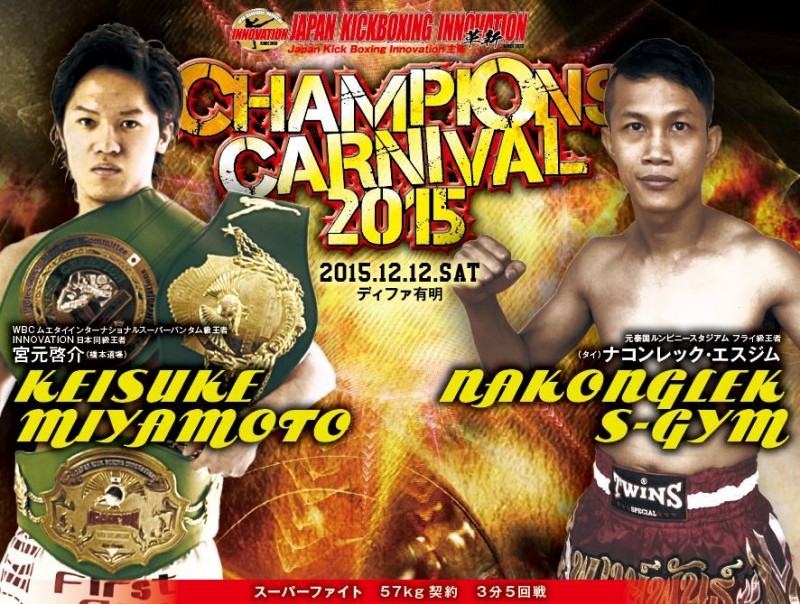 【CHAMPIONS CARNIVAL2015】 12月12日(土)東京ディファ有明で開催されるINNOVATION興行【CHAMPIONS CARNIVAL2015】での日本フェザー級タイトルマッチに挑むチャンピ...