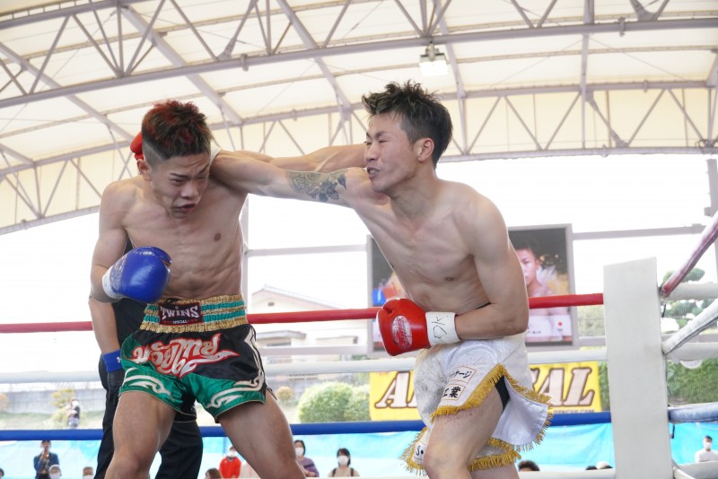 ※外山が右ストレートで2回ダウン奪取、佐藤が左バックブローで1回ダウン奪取あり。