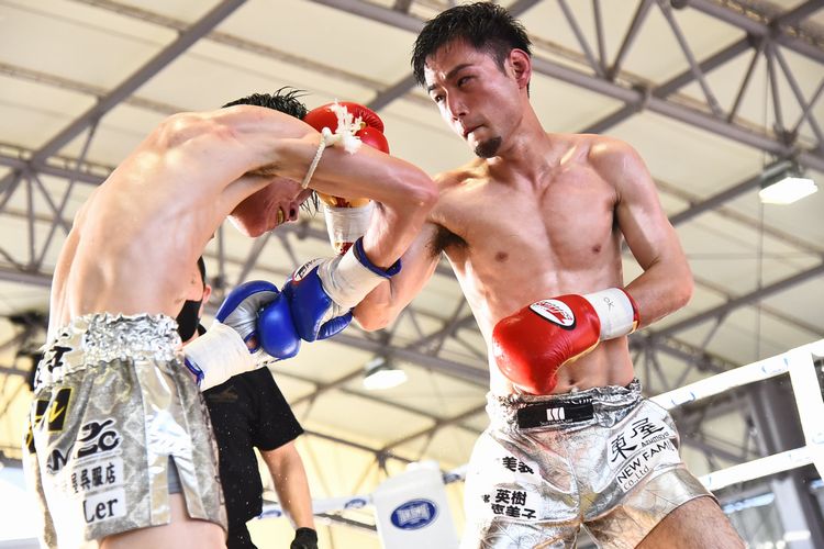 1R、サウスポーの児嶋は独特のステップから左ミドル、左フック。吉田は組み付いてヒザ、こかしも多用し相手のリズムを崩す。2R、児嶋はバックブロー、バックスピンと大技を狙うも、吉田は右ミドル、徐々に右ストレートのクリーンヒットが目立つように。