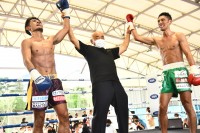 1R、パンチを振り回す加藤は、偶発性のバッティングを受けてヒートアップ。倒れた清水に攻撃してしまいイエローカード(注意)を受ける。2Rもラフファイトを仕掛ける加藤は右フックを当てて清水からダウンを奪う。3Rもパンチで詰める加藤に、清水は組んでのヒザで対抗。度重なるバッティングでイラ立ちを見せる加藤は最後まで倒しに姿勢を見せ、判定勝ちした。
