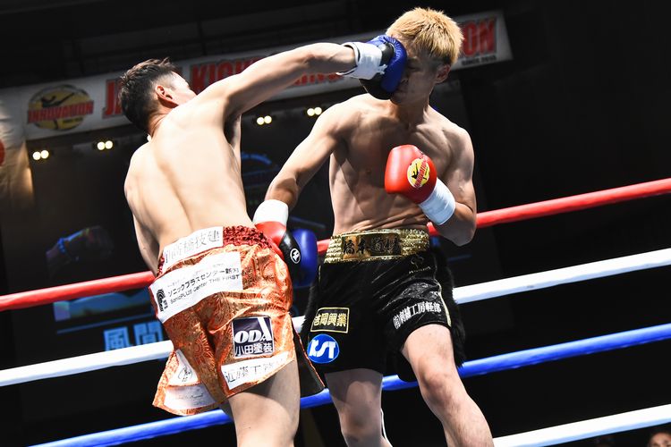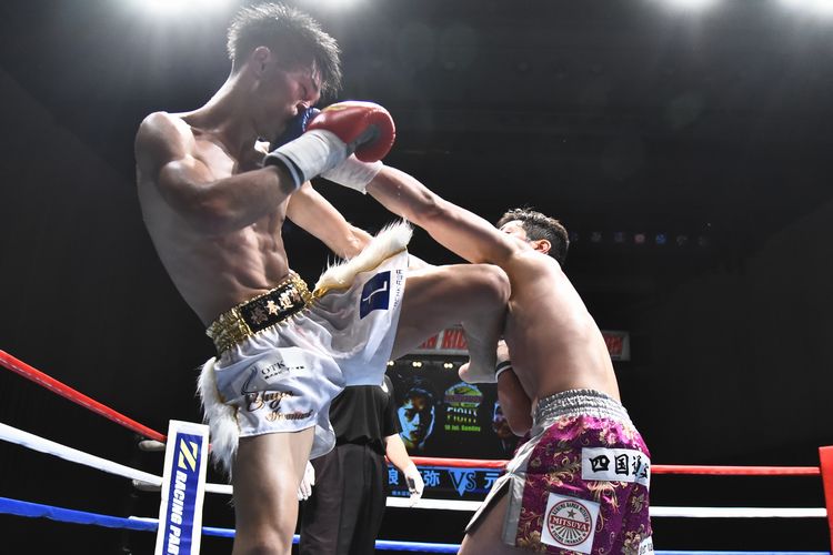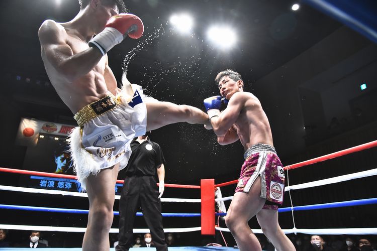 1ラウンド、スピーディーな岩浪が右ローキックや左三日月蹴りを小刻みに繰り出す。元山は右ミドルキックで前進するも岩浪ペース。2ラウンド、岩浪は、攻撃に多彩さを加え右ボディーストレートを好打。元山は前進からのパンチを繰り返し左フックをヒットさせるも岩浪はすぐに首相撲に移行して連打を許さない。3ラウンド、元山は強いプレッシャーと共に前進の姿勢を強める挑戦者的姿勢。そこを首相撲を中心にいなす岩浪の防御技術が巧みに阻むが、スタミナが削られたか攻撃面で手数は減少。ラウンド終了後、ジャッジの中間発表は、2名が岩浪を支持し、1名はドロー。4ラウンド、ポイント劣勢を認識した故か元山は更に前進を繰り返し激しい闘志を倍加させ、単発ながらパンチの着弾数も増す。一方、岩浪はそれに押されながらも左ミドルキックをヒットさせ、首相撲でダメージを最小限度に抑えるテクニックが流石ながら表情は苦しそう。最終回、5ラウンド、苦しい岩浪、まくる元山の構図が強まり、元山応援団は逆転を促すかのように盛り上がる。しかし、岩浪のパンチを喰らいながらも追撃を許さないディフェンスが見栄えは良くなくとも効果的で元山は攻めきれない。追うチャレンジャー、防ぐチャンピオンの様相のまま試合終了。元山の全身全霊の特攻は、ジャッジ1名がドローと反映させたが、2名は前半の岩浪のポイントを後半守り切った形で岩浪を支持し、王座防衛となった。悔しい挑戦者、元山。約1年9か月ぶりの復帰戦で辛くもベルトを守り安堵の王者、岩浪のコントラストが浮き彫りとなった。