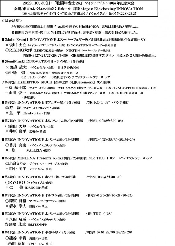 16時~INNOVATION山梨大会「戦闘甲斐士26」
