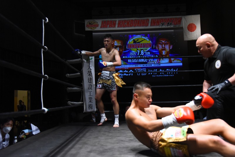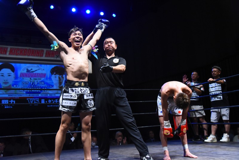 この興行からJAPAN KICKBOXING INNOVATIONと提携が開始されたタイ国はムエタイの殿堂、ルンピニースタジアムの認定団体、ルンピニージャパンのチャンピオンシップ第1弾がメインイベントとなったこの試合、INNOVATIONフライ級王者だった松田は、同王座初防衛を果たした後、これを返上し、不退転の覚悟で臨む。対するシンイチは、西日本のムエタイ名門、石井一成擁するエクシンディコンジャパンで育った俊英(所属名はプロモーション)。