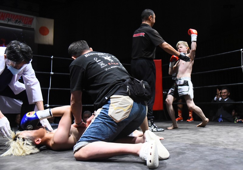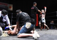 第3ラウンド、最終ラウンド、逆転のパンチを狙う松田。これにシンイチが狙いドンピシャの右縦肘打ちが打ち抜かれ松田ダウン。完全に意識を飛ばされ、カウント中に立ちかけるも崩れ落ち、シンイチの見事な戴冠劇と相成った。