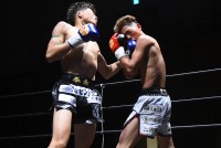 第2ラウンド、ペースを上げるシンイチは、右ストレートやテンカオ(膝蹴りカウンター)なども繰り出し優位を保つ。松田は、パンチで対抗するが封じられている感。