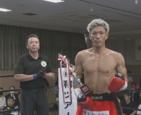 ケガによる復帰戦を山梨まで遠征した古豪HIRO。迎える新鋭・磯谷は昨年2連続でベテラン選手に苦汁を飲まされ後が無い。従来の戦法からケリ主体に変えたのか、それが功奏してローキックで沈めた。1年振りの地元メインを会心の勝利で飾った。